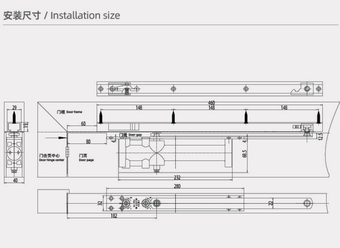 adjustable smooth swing concealed overhead hydraulic door closer with fire rated metal arm for hotels  commercial use-2