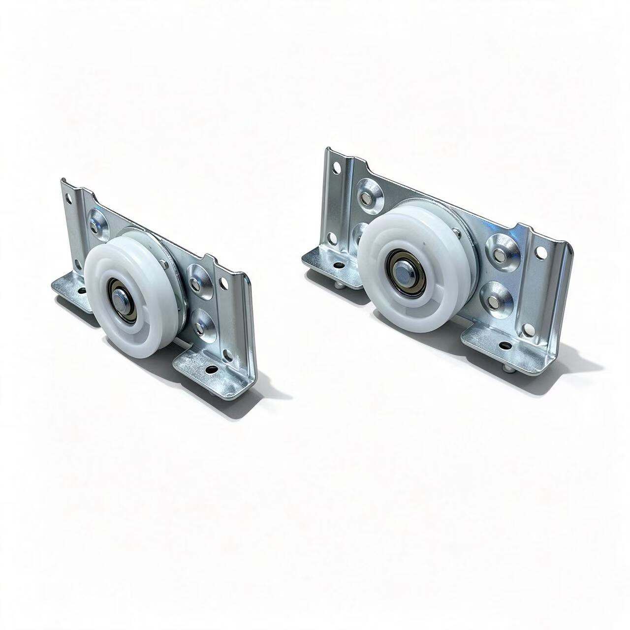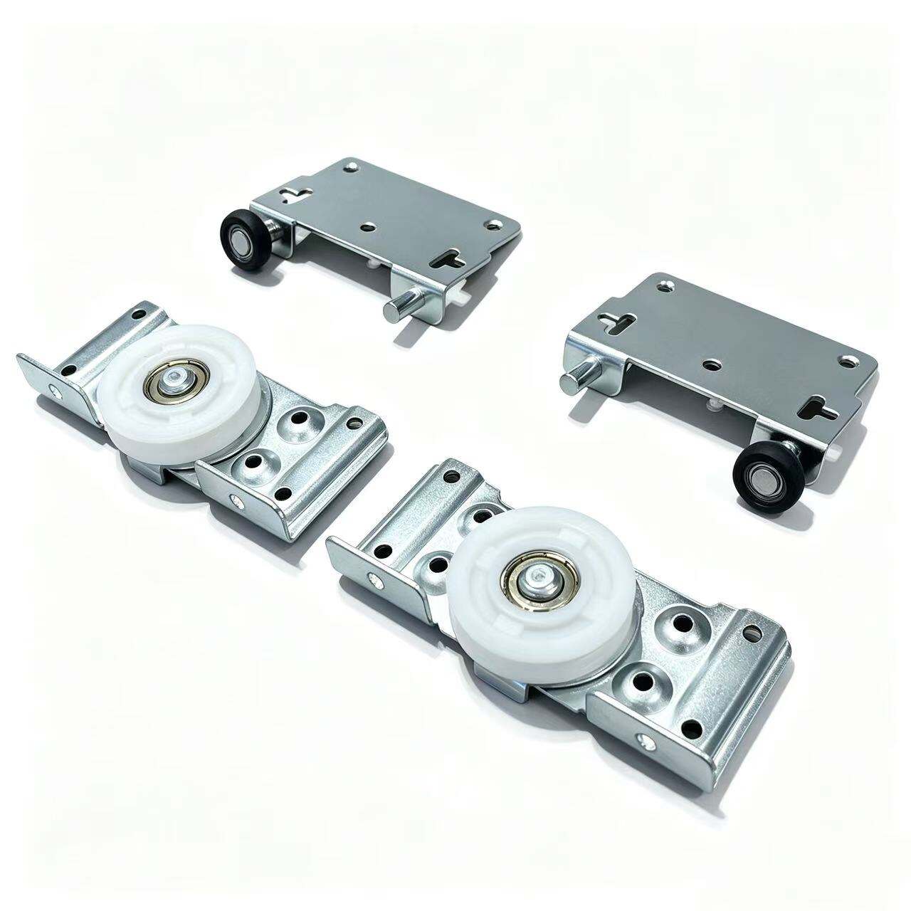 48mm bottom wheels. Black top hubs. White bottom hubs. Silver-white metal. Practical. Durable. Reliable. One kit for one door.